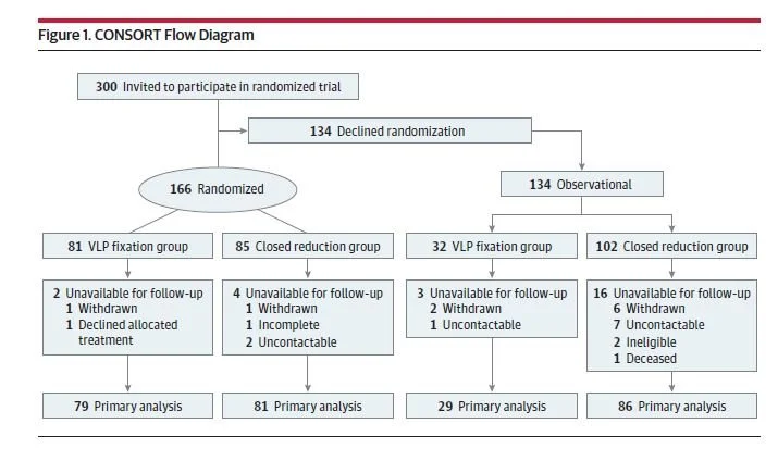 Made by possible by a Clifford Craig Foundation medical research grant, CROSSFIRE was a multicenter study that recruited participants from 19 sites across Australia and New Zealand, with treatment randomised to surgical (VLP) fixation or nonsurgical treatment (CR).
